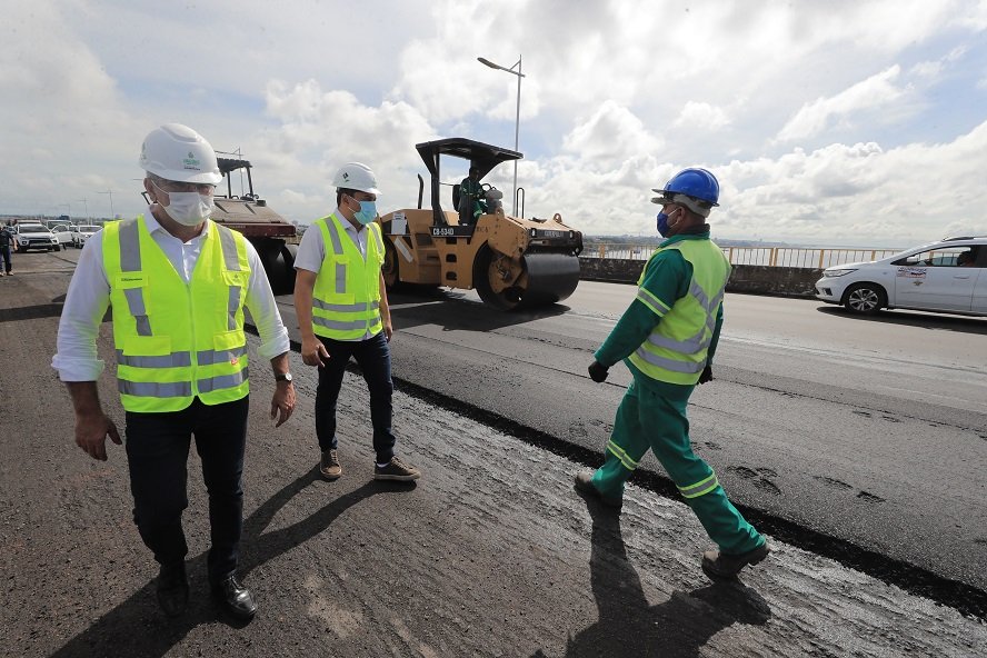 Na ponte, a intervenção tem início na cabeceira, contemplando um total de 9,97 quilômetros. Para a recuperação de todo asfaltamento, a Seinfra faz a reciclagem de asfalto antigo e adição de outros componentes para a formar a base do novo pavimento.